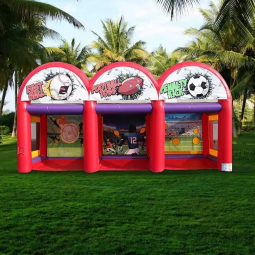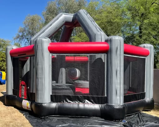 25ft Long x 25ft Wide x 16ft High.Knock your friends down on a wrecking ball game!